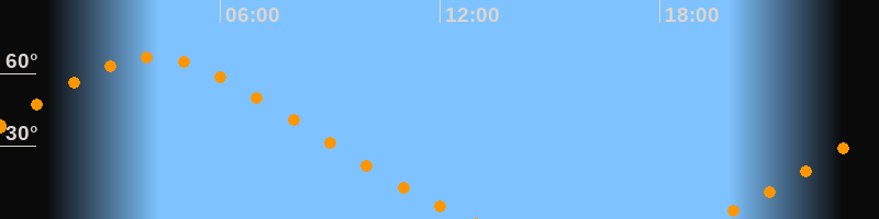 | Aufgang | 19:24 Uhr im Nordosten (αAz = 42,5°) |