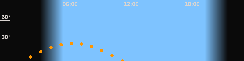 Daten und Fakten: NGC6822 (IC 4895, PGC 63616) Rektaszension 19h 44m 56s Deklination -14° 47' 21'' Helligkeit 8,7 mag (14,4 mag/arcmin^2) Scheinbare Ausdehnung 15,5' x 13,5' Entfernung ca. 1,6 Mio ly Ausdehnung 6000 ly Sichtbarkeit in Zwickau 18.04.2024 Aufgang 02:11 Uhr im Osten (αAz = 110,4°) Höchster Stand (Kulmination) 07:07 Uhr (h = 26,1°) Untergang 12:03 Uhr im Westen (αAz = 249,6°) Standort: Zwickau, Algorithmen siehe Credits