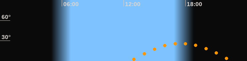 Daten und Fakten: NGC6822 (IC 4895, PGC 63616) Rektaszension 19h 44m 56s Deklination -14° 47' 21'' Helligkeit 8,7 mag (14,4 mag/arcmin^2) Scheinbare Ausdehnung 15,5' x 13,5' Entfernung ca. 1,6 Mio ly Ausdehnung 6000 ly Sichtbarkeit in Zwickau 26.10.2026 Aufgang 12:38 Uhr im Osten (αAz = 110,4°) Höchster Stand (Kulmination) 17:34 Uhr (h = 26,1°) Untergang 22:30 Uhr im Westen (αAz = 249,6°) Standort: Zwickau, Algorithmen siehe Credits