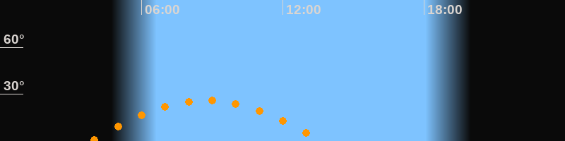 Daten und Fakten: NGC6822 (IC 4895, PGC 63616) Rektaszension 19h 44m 56s Deklination -14° 47' 21'' Helligkeit 8,7 mag (14,4 mag/arcmin^2) Scheinbare Ausdehnung 15,5' x 13,5' Entfernung ca. 1,6 Mio ly Ausdehnung 6000 ly Sichtbarkeit in Zwickau 09.03.2028 Aufgang 03:48 Uhr im Osten (αAz = 110,4°) Höchster Stand (Kulmination) 08:44 Uhr (h = 26,1°) Untergang 13:41 Uhr im Westen (αAz = 249,6°) Standort: Zwickau, Algorithmen siehe Credits