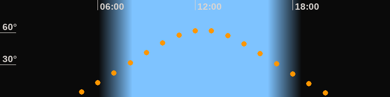 | Höchster Stand (Kulmination) | 12:27 Uhr (h = 62,4°) |