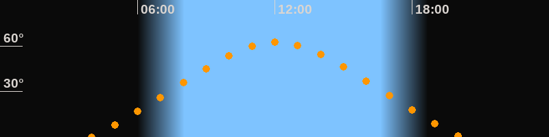| Höchster Stand (Kulmination) | 12:03 Uhr (h = 62,4°) |