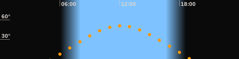 | Höchster Stand (Kulmination) | 12:08 Uhr (h = 51°) |