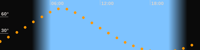 | Höchster Stand (Kulmination) | 07:25 Uhr (h = 75,1°) |