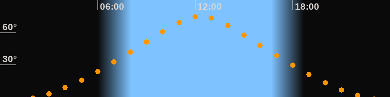 | Höchster Stand (Kulmination) | 12:20 Uhr (h = 75,1°) |