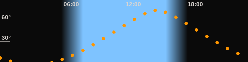 | Höchster Stand (Kulmination) | 15:10 Uhr (h = 75,1°) |