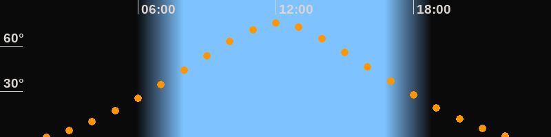 | Höchster Stand (Kulmination) | 12:06 Uhr (h = 75,1°) |