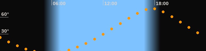 | Höchster Stand (Kulmination) | 17:38 Uhr (h = 75,1°) |