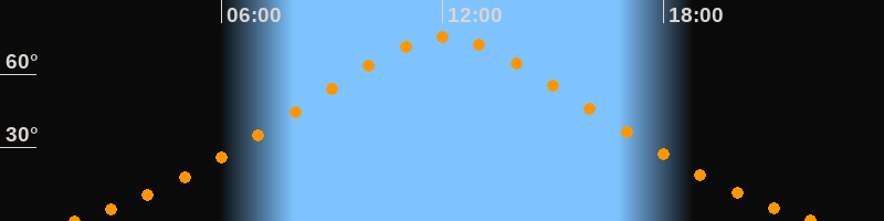 | Höchster Stand (Kulmination) | 12:03 Uhr (h = 75,1°) |