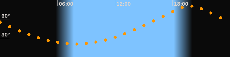 | Höchster Stand (Kulmination) | 19:50 Uhr (h = 80,6°) |