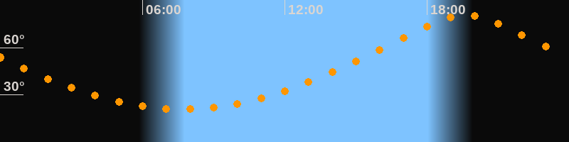 | Höchster Stand (Kulmination) | 19:38 Uhr (h = 80,6°) |