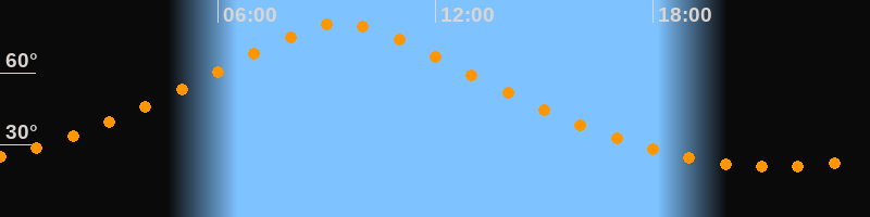 | Höchster Stand (Kulmination) | 09:24 Uhr (h = 80,6°) |