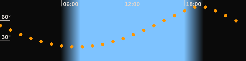 | Höchster Stand (Kulmination) | 19:29 Uhr (h = 80,6°) |