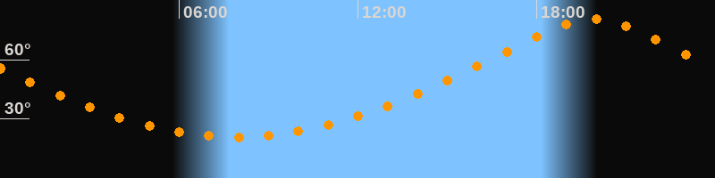 Höchster Stand (Kulmination)19:53 Uhr (h = 80,6°)