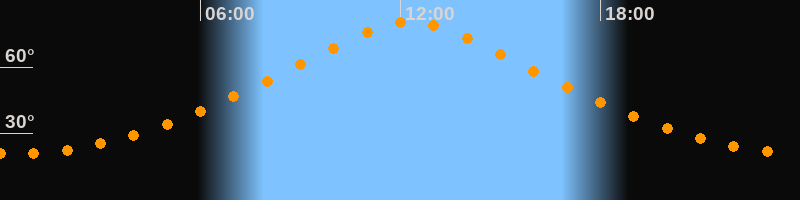 Höchster Stand (Kulmination)12:18 Uhr (h = 80,6°)