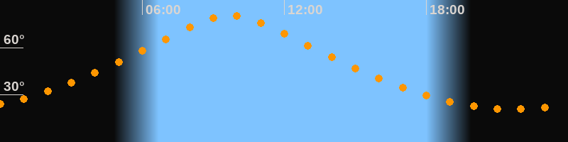 | Höchster Stand (Kulmination) | 09:43 Uhr (h = 80,6°) |