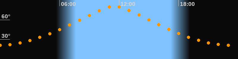 | Höchster Stand (Kulmination) | 11:32 Uhr (h = 80,6°) |