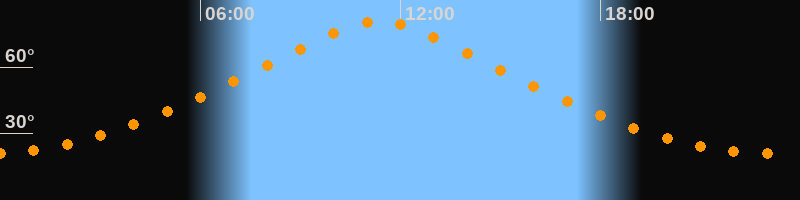 | Höchster Stand (Kulmination) | 11:21 Uhr (h = 80,6°) |