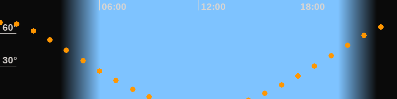 Höchster Stand (Kulmination)00:13 Uhr (h = 70°)