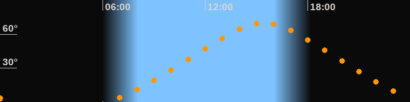 Höchster Stand (Kulmination)15:25 Uhr (h = 70°)