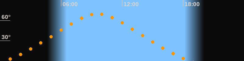 Höchster Stand (Kulmination)09:35 Uhr (h = 70°)
