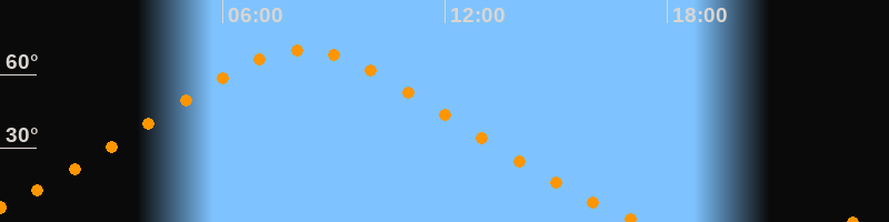 Höchster Stand (Kulmination)08:10 Uhr (h = 70°)