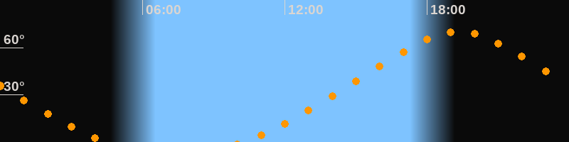 Höchster Stand (Kulmination)19:20 Uhr (h = 70°)