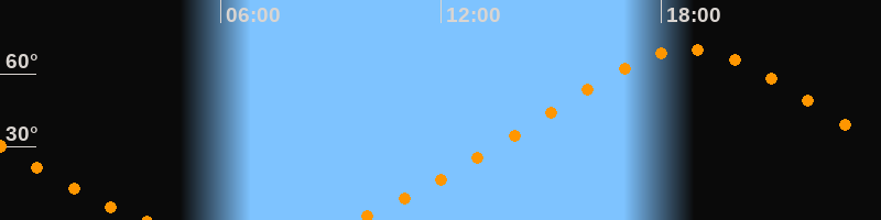 Höchster Stand (Kulmination)18:44 Uhr (h = 70°)