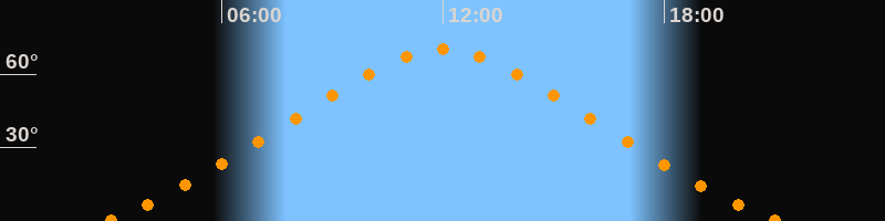 Höchster Stand (Kulmination)11:59 Uhr (h = 70°)