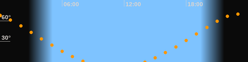 Höchster Stand (Kulmination)23:06 Uhr (h = 70°)