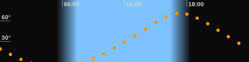 Höchster Stand (Kulmination)17:23 Uhr (h = 71,1°)