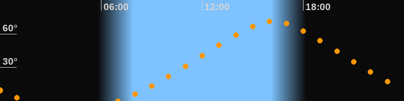 Höchster Stand (Kulmination)16:13 Uhr (h = 71,1°)