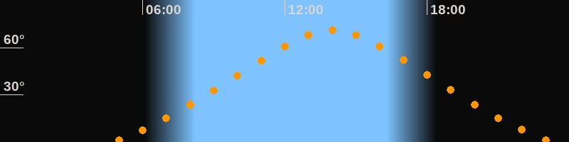 Höchster Stand (Kulmination)14:00 Uhr (h = 71,1°)
