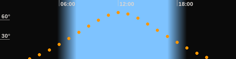 Höchster Stand (Kulmination)12:11 Uhr (h = 71,1°)
