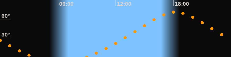 Höchster Stand (Kulmination)18:14 Uhr (h = 71,1°)