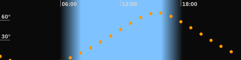 Höchster Stand (Kulmination)15:37 Uhr (h = 71,1°)