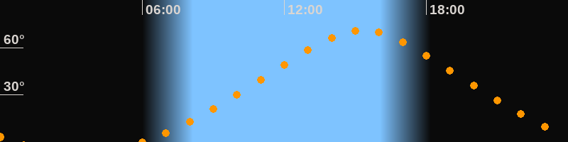 Höchster Stand (Kulmination)15:17 Uhr (h = 71,1°)