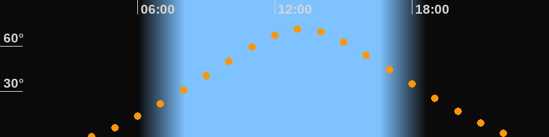 Höchster Stand (Kulmination)13:11 Uhr (h = 71,1°)