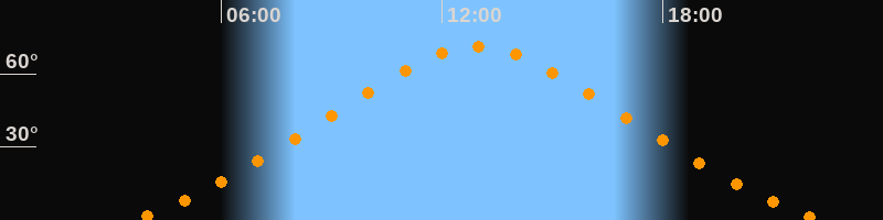 Höchster Stand (Kulmination)12:57 Uhr (h = 71,1°)