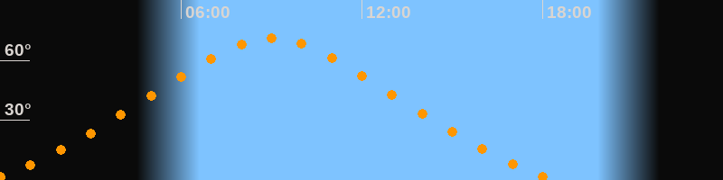 Höchster Stand (Kulmination)09:02 Uhr (h = 71,1°)