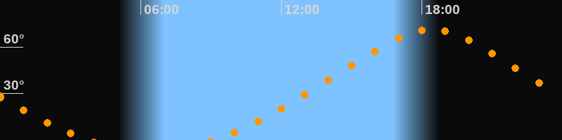 Höchster Stand (Kulmination)18:24 Uhr (h = 71,1°)