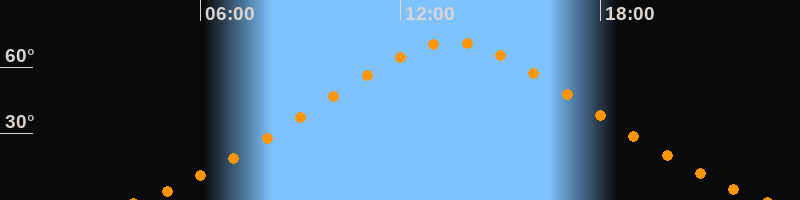 Höchster Stand (Kulmination)13:33 Uhr (h = 71,1°)