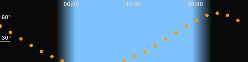 Höchster Stand (Kulmination)20:59 Uhr (h = 71,1°)