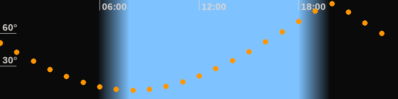| Höchster Stand (Kulmination) | 19:55 Uhr (h = 86,7°) |