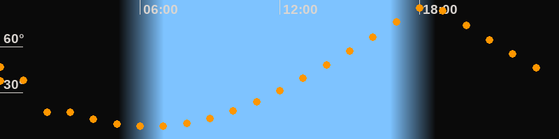 | Höchster Stand (Kulmination) | 18:24 Uhr (h = 86,7°) |