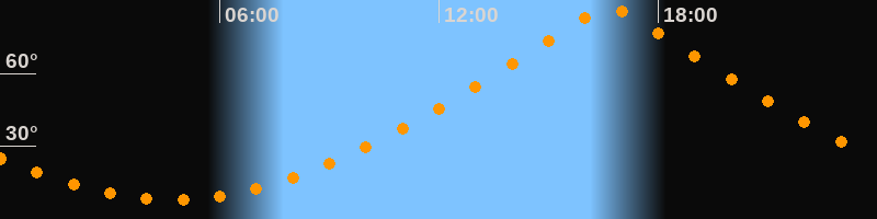 | Höchster Stand (Kulmination) | 16:40 Uhr (h = 86,7°) |