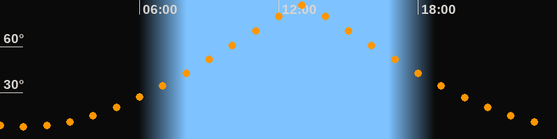 | Höchster Stand (Kulmination) | 12:59 Uhr (h = 86,7°) |
