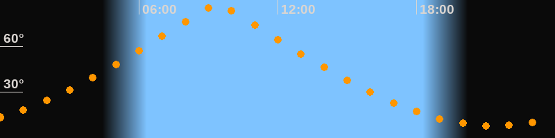 | Höchster Stand (Kulmination) | 09:23 Uhr (h = 86,7°) |