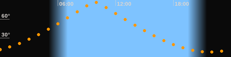 | Höchster Stand (Kulmination) | 09:52 Uhr (h = 86,7°) |