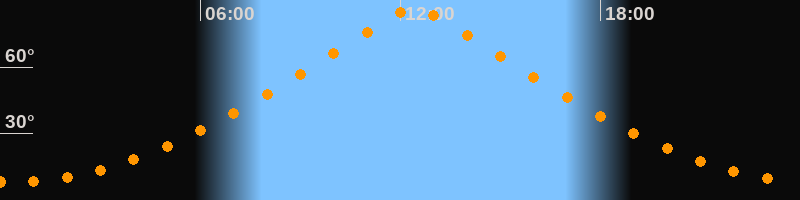 | Höchster Stand (Kulmination) | 12:25 Uhr (h = 86,7°) |